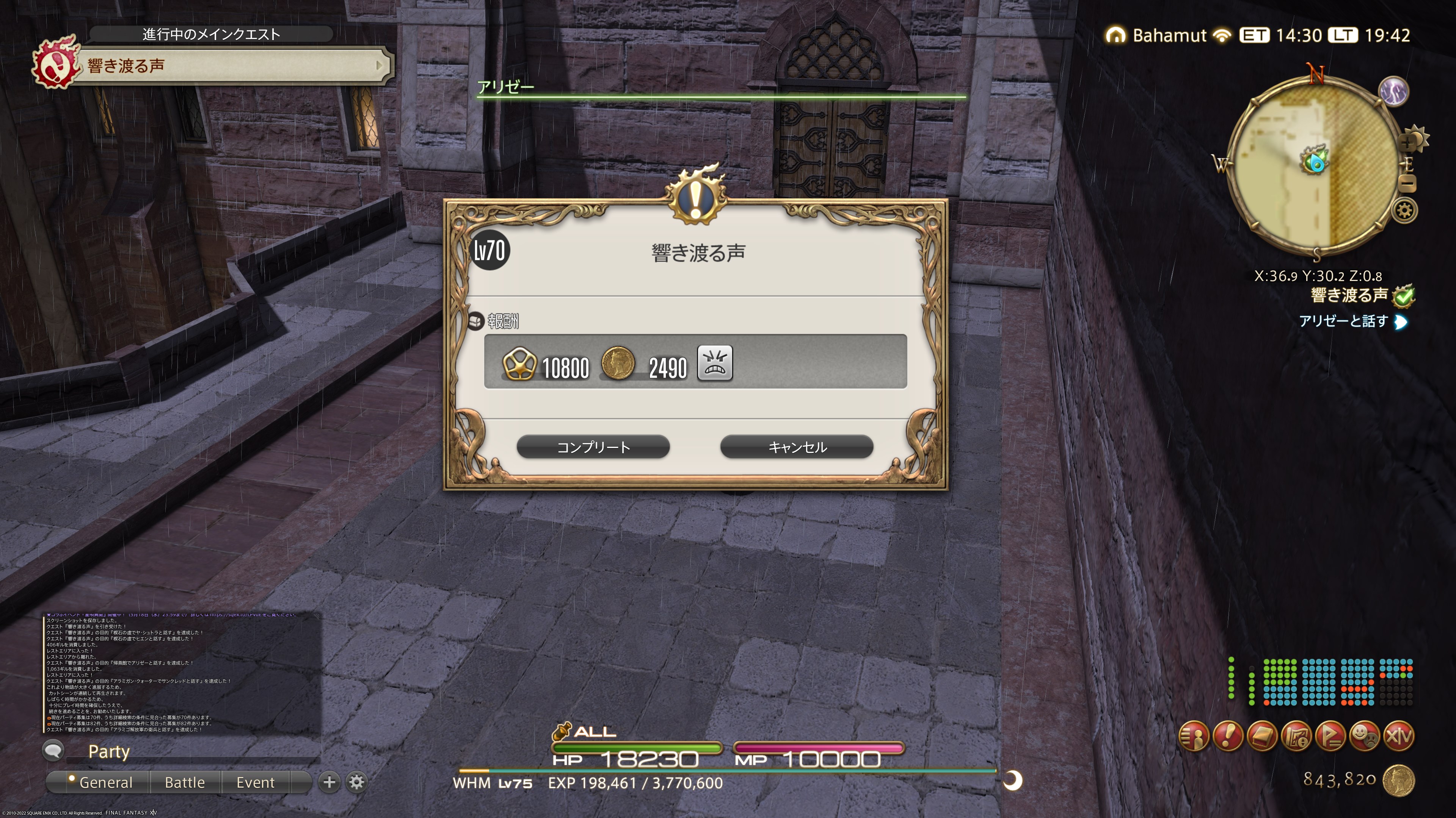 ある程度状態が整ったのでヒエンと共にリセの待つアラミゴへ。しかしここで謎の声が暁一行に聞こえ、サンクレッドが昏睡状態になってしまいました。クルルさんによると魂がなくなってしまったようです。一体どういうことなんだろう?こんな展開今まで全くなかったので全然わかりません。こういう状態を知っていそうなウリエンジェに話を聞きに石の家へ。しかしここでも同じ声が聞こえ、今度はヤ・シュトラとウリエンジェが昏睡状態に。全く予想外の展開過ぎる......これにてパッチ4.4終了です。これ、漆黒編はどういう状態で始まるんだろう。
