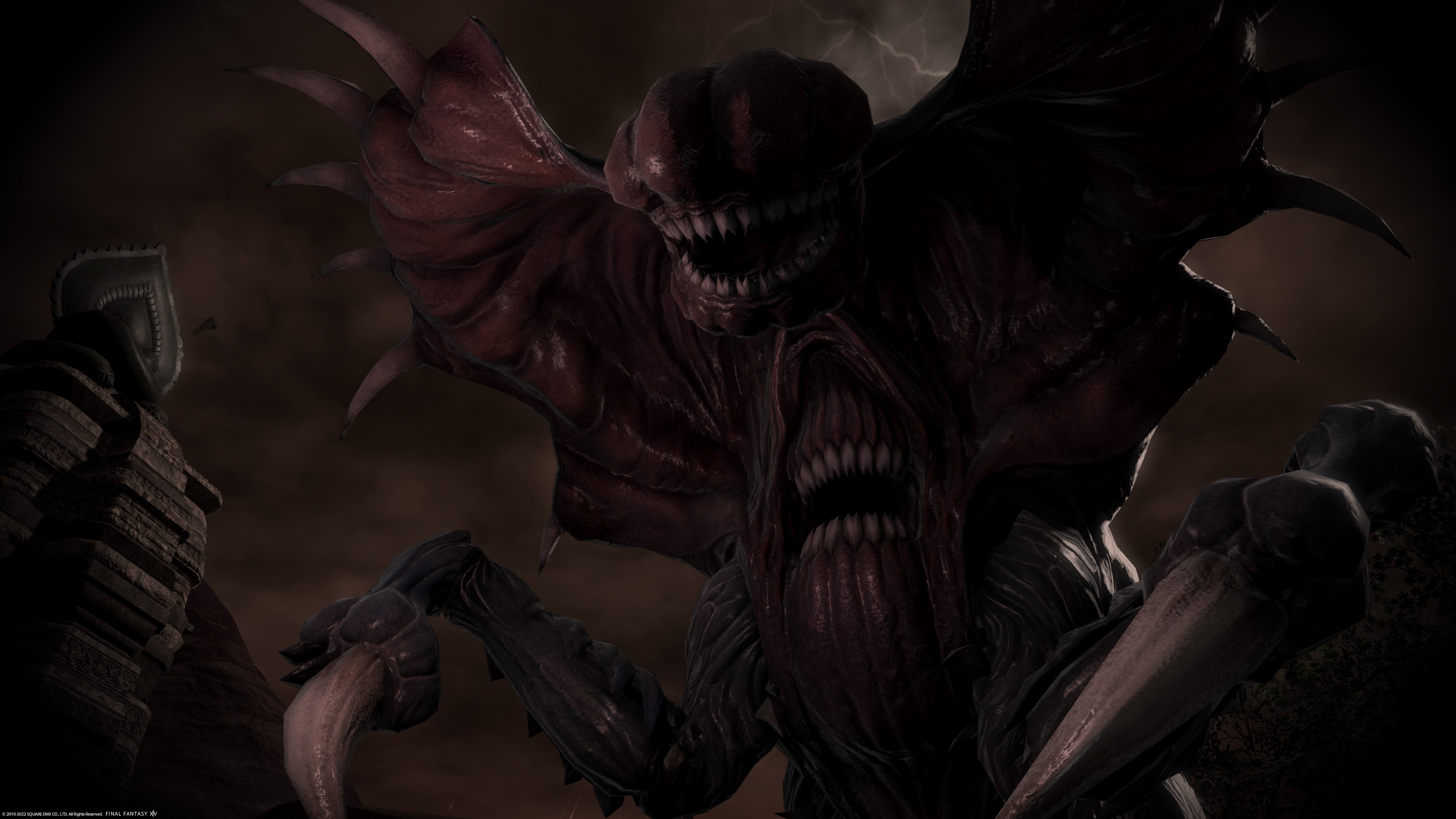 このID、とにかく周囲の状況が苛酷過ぎ。道中で出会った人達は皆獣になってしまったり、空には大量の獣が飛び交っていたりとえらいことに。そして最奥には偽神獣スヴァーバーヌが。見た目が怖すぎる......1度死んでしまいましたが、何とか討伐に成功。しかし、今度からこんな敵を相手にしないといけないのかと思うと気が重くなりますね。だってこの獣も元々は人だったはずですし......'