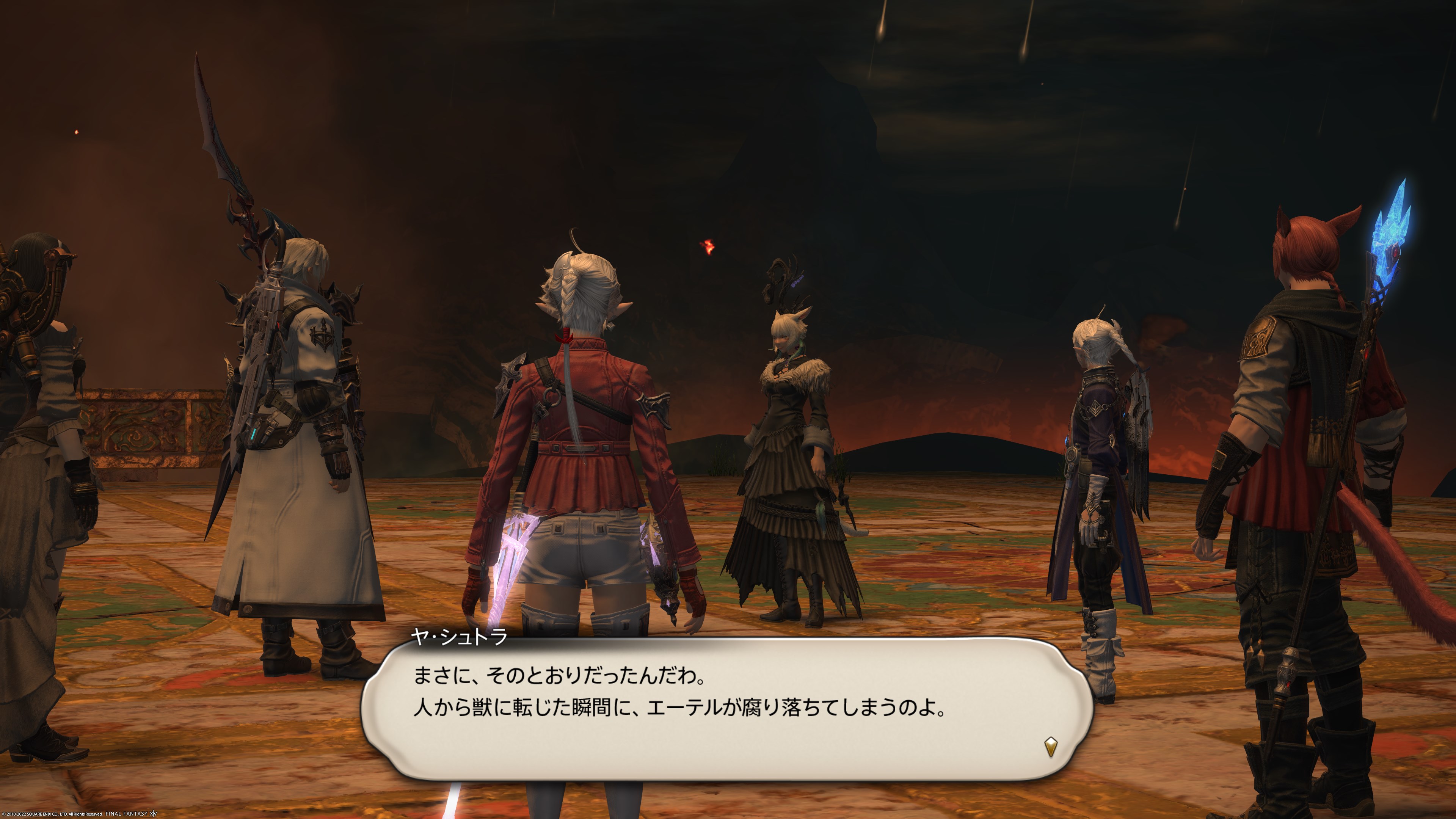 ヤ・シュトラが戦闘終了後にこの獣について分かったことを伝えてくれました。どうやらエーテルが完全に無と化してしまったようです。テンパード化はエーテルに作用するだけだったので、正しいエーテルの状態に戻せば良かったわけですが、一度獣になってしまったら最後元に戻すことは不可能だとのこと。じゃあもう既に多くの人が元に戻せない状態になってしまったということですね......ストーリーが重たすぎる......
