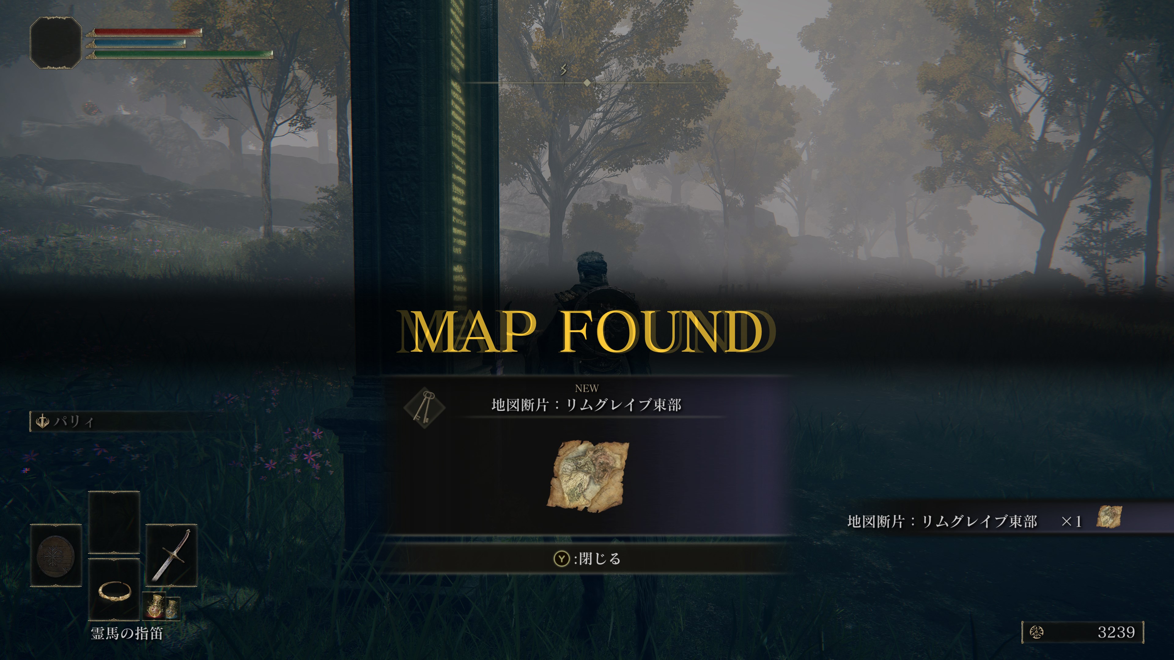 前回はケネスと遭遇。彼の依頼である霧の森の先にある砦を確認してみようと思い行動開始。近場を散策していると霧の濃い森に到着。どうやらここが霧の森みたいですね。地図断片も発見してマップが詳細にわかるようになりました。