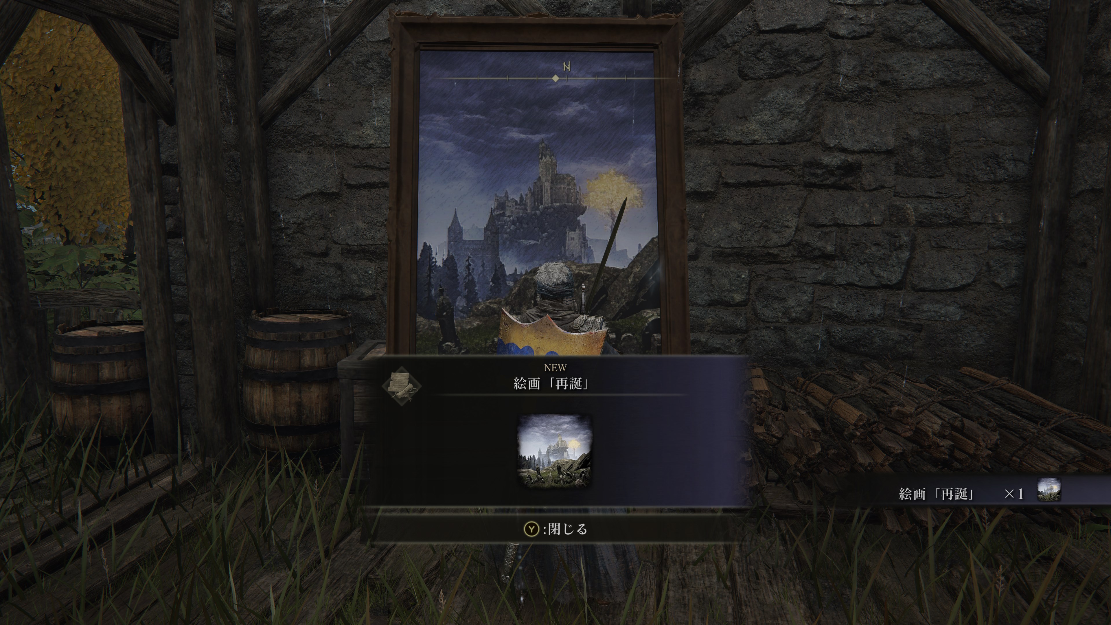 さて、お次は絵描きのボロ家を発見。ここには絵画「再誕」が。う~ん......どこかで見たような気がする風景なんですよねぇ。でも正確な位置まで特定できないwヒントは奥に見える建物と、あと手前のお墓かな?この手の絵って、祝福の近くにあったりするのかなぁ。序盤の絵画だし、簡単な部類だと思うんだけどなぁ。