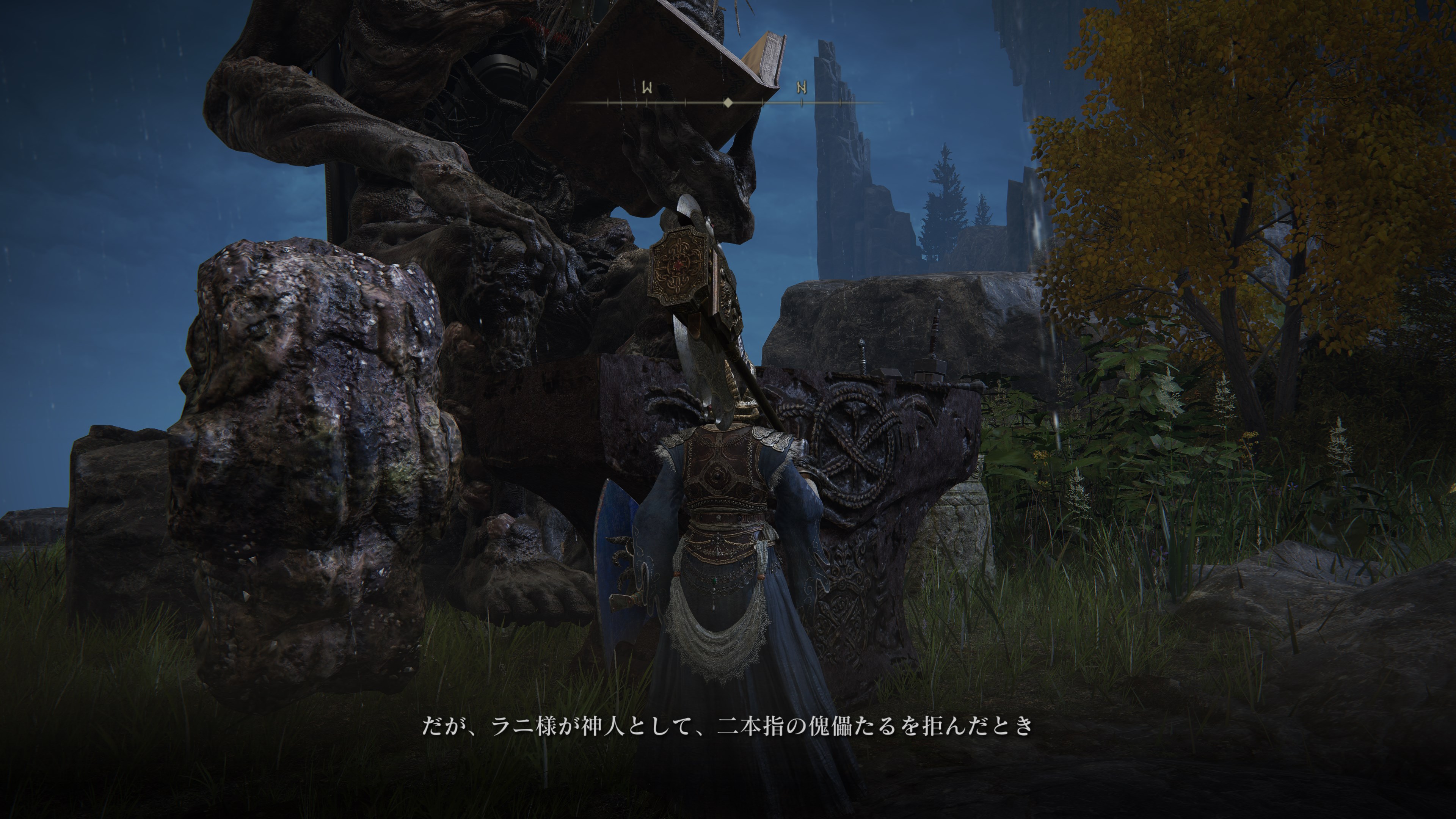 マップの赤印に向かうと巨大な穴が空いています。穴が空いているだけならまだわかるのですが、何故か砕けた岩が空中に浮いていますwこれはどういう原理なんだろう?エルデンリングのスペルには重力関係があるから、何かしら関わり合いがあるのかも?