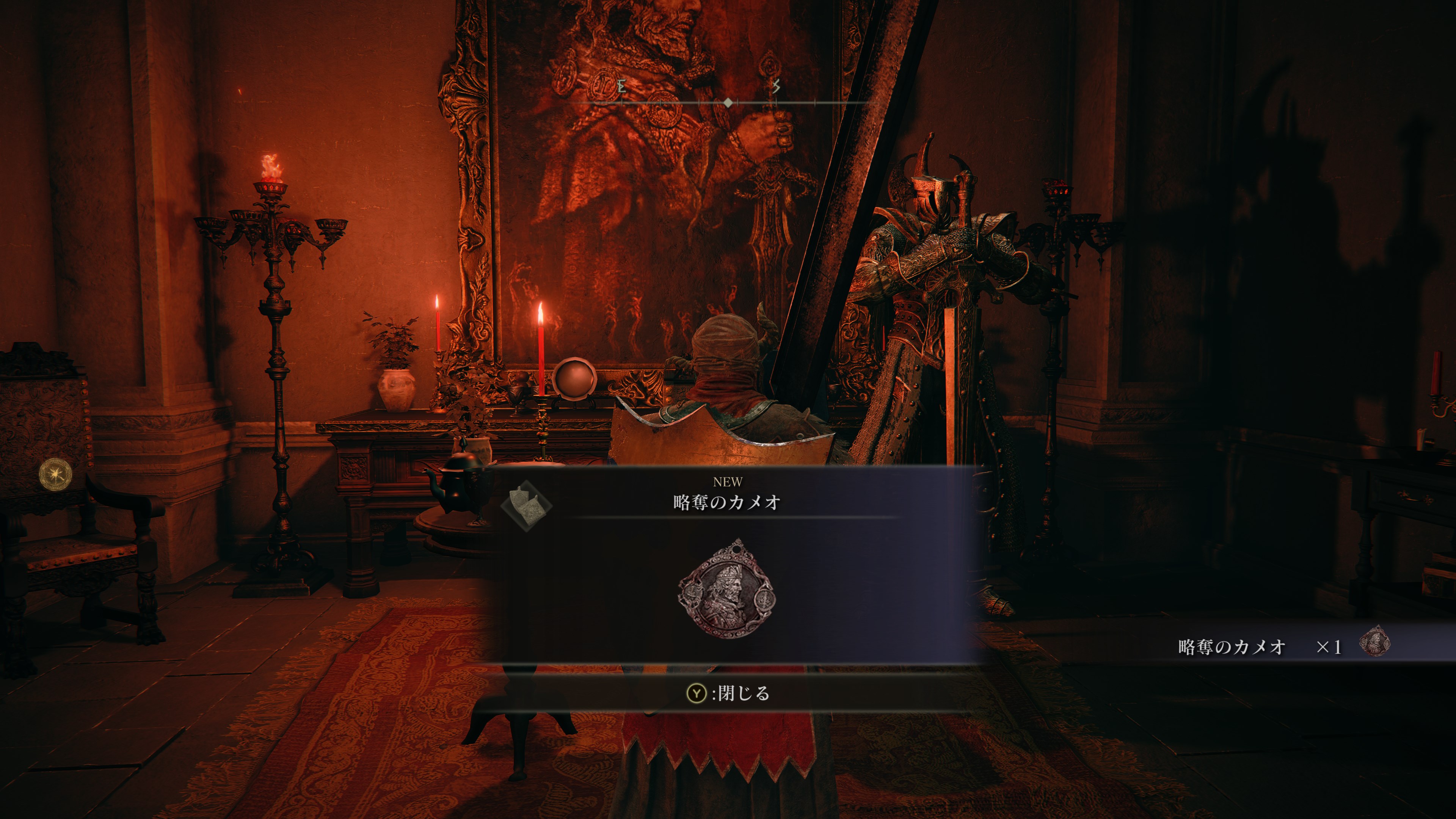 全ての依頼を終えたので火山館へ。タニスに報告すると略奪のカメオを貰いました。敵を倒したときにHPを回復できるタリスマンですね。使うかは微妙かなと。