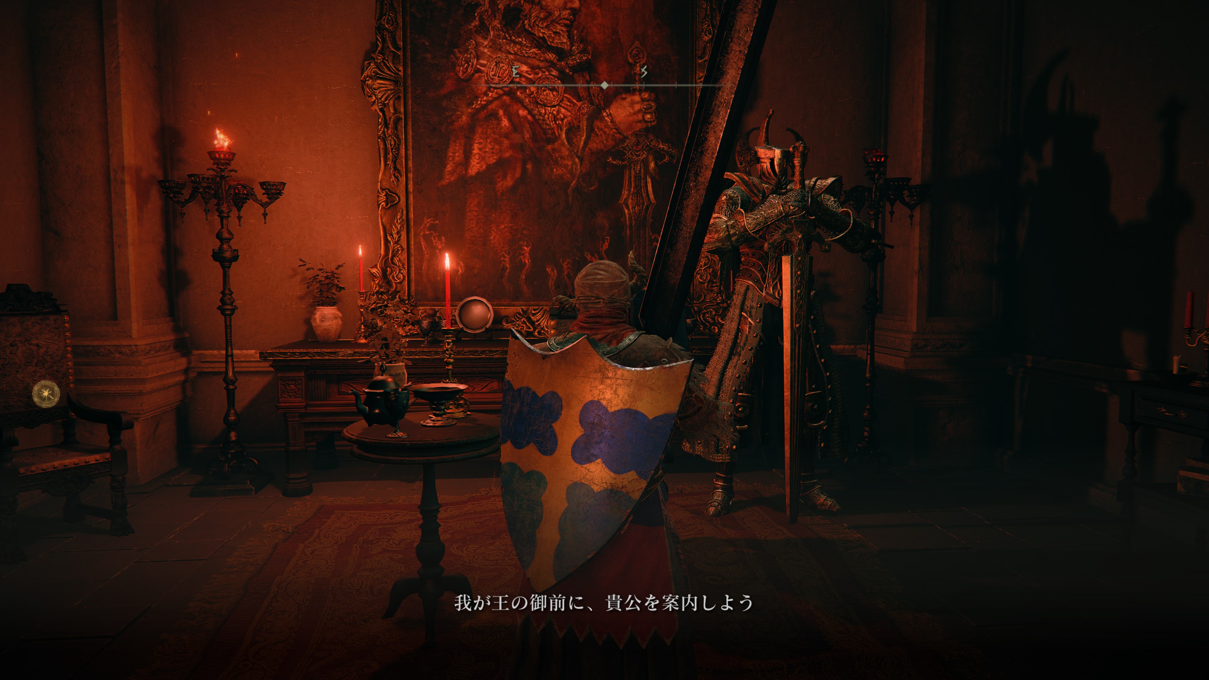 お次は客間の通路にいた人の元へ。そこではエモートの「感謝を」を入手することができました。ひたすら盾チクしかしてなかったのですが、感謝されて良いのでしょうか?w