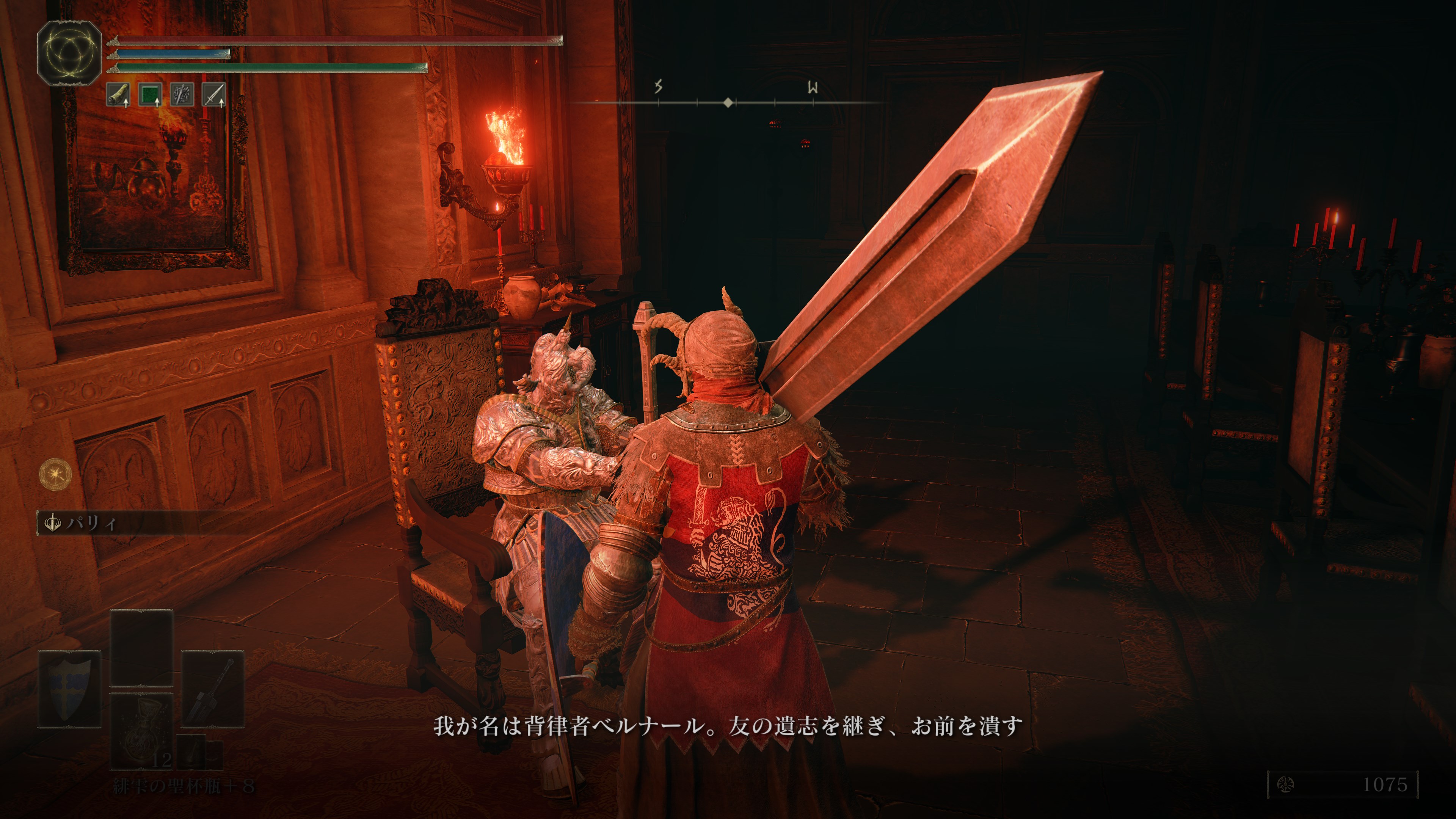 最後にベルナールの元へ。火山館はこれでお終いだと言い、私を潰すと宣言。追われる身になってしまいましたね。強靭高そうな装備しているし、特大剣と相性悪そうだなぁwでも侵入してきた際にはボコボコにしてやりますよw