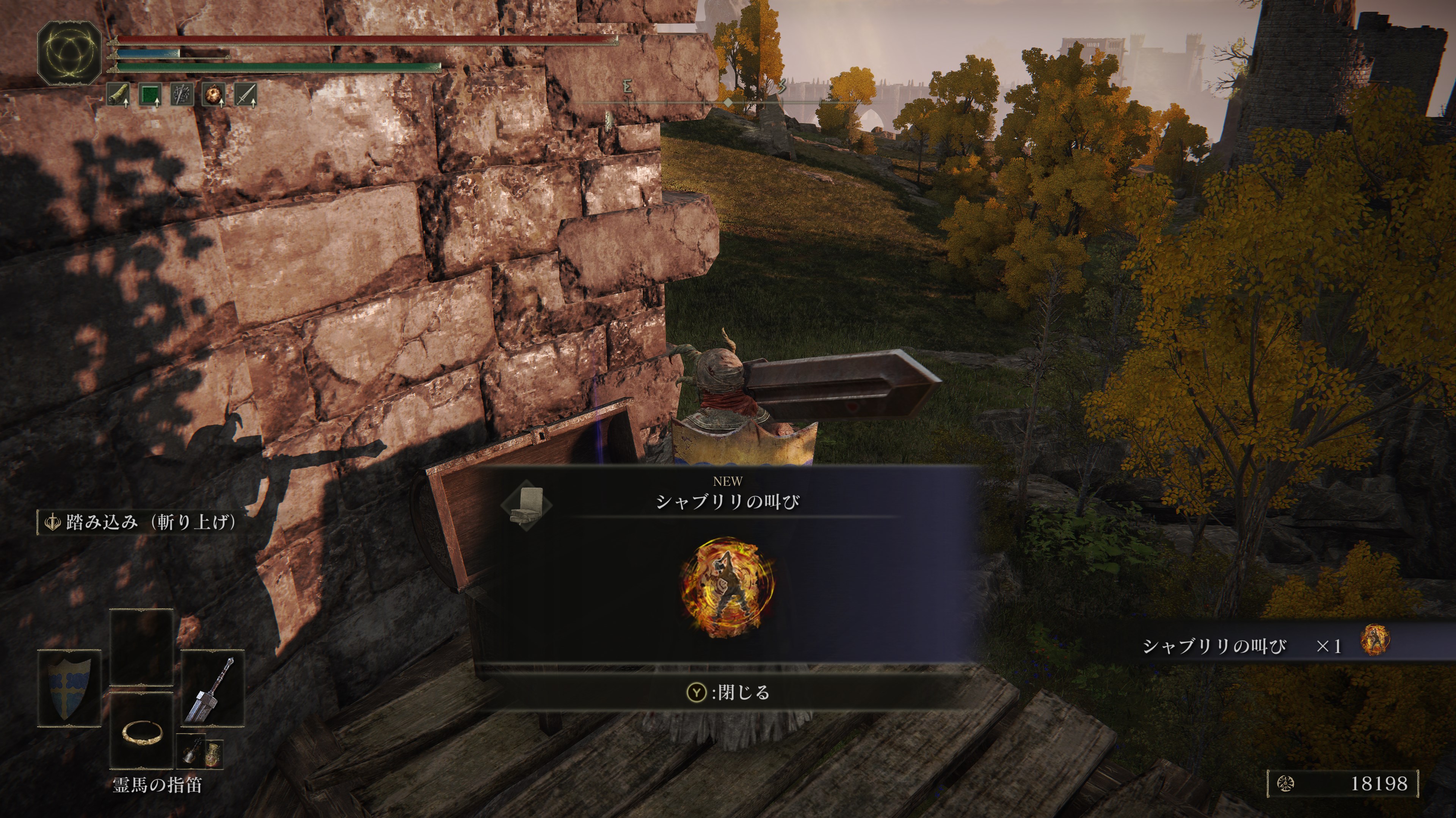 引き続きリエーニエの探索を行っていきます。まずは狂い火の灯台へ。ここに近づくと発狂ゲージがモリモリ上がっていきますwBloodborneのメンシスの悪夢を彷彿とさせますねw狂い火の視線に入ると発狂ゲージが上がってしまうので物の影に隠れつつ塔へ。周囲の敵も発狂持ちなので気をつける必要がありましたが、武器の火力が高いのでさっくりと処理完了。シャブリリの叫びを入手しました。