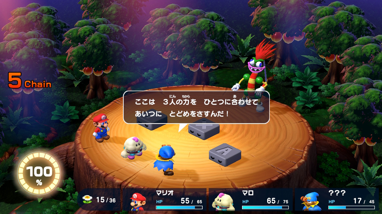 その後はまっすぐ進んでユミンパ戦へ突入。ジーノに加勢する形で戦闘開始。ここは特殊ルールが用いられる戦闘ですね。使用回数の多いボタンが一定ターン使用できなくなるというもの。私は初手でスペシャル技を連発して一気に体力を削る作戦を取りましたが、安定感のある戦い方ってあるんでしょうか?