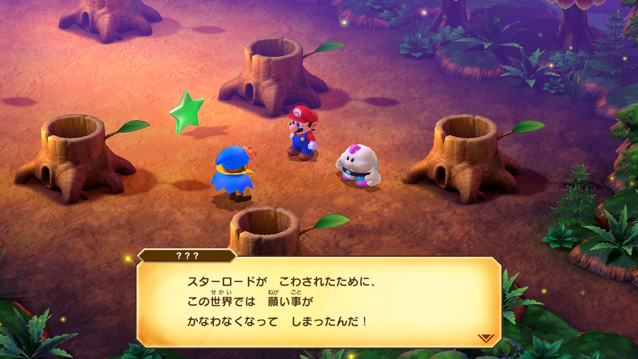 前回はユミンパ撃破まで書きました。今回はその続きからとなります。戦闘後、共闘したキャラ(後のジーノ)がスターロードから来た存在であること、スターロードがクッパ城に突き刺さった巨大な剣のせいでばらばらになってしまったこと、この状態だと願い事が叶わなくなってしまうことを話してくれました。とにかく世界がやばいってことですねw