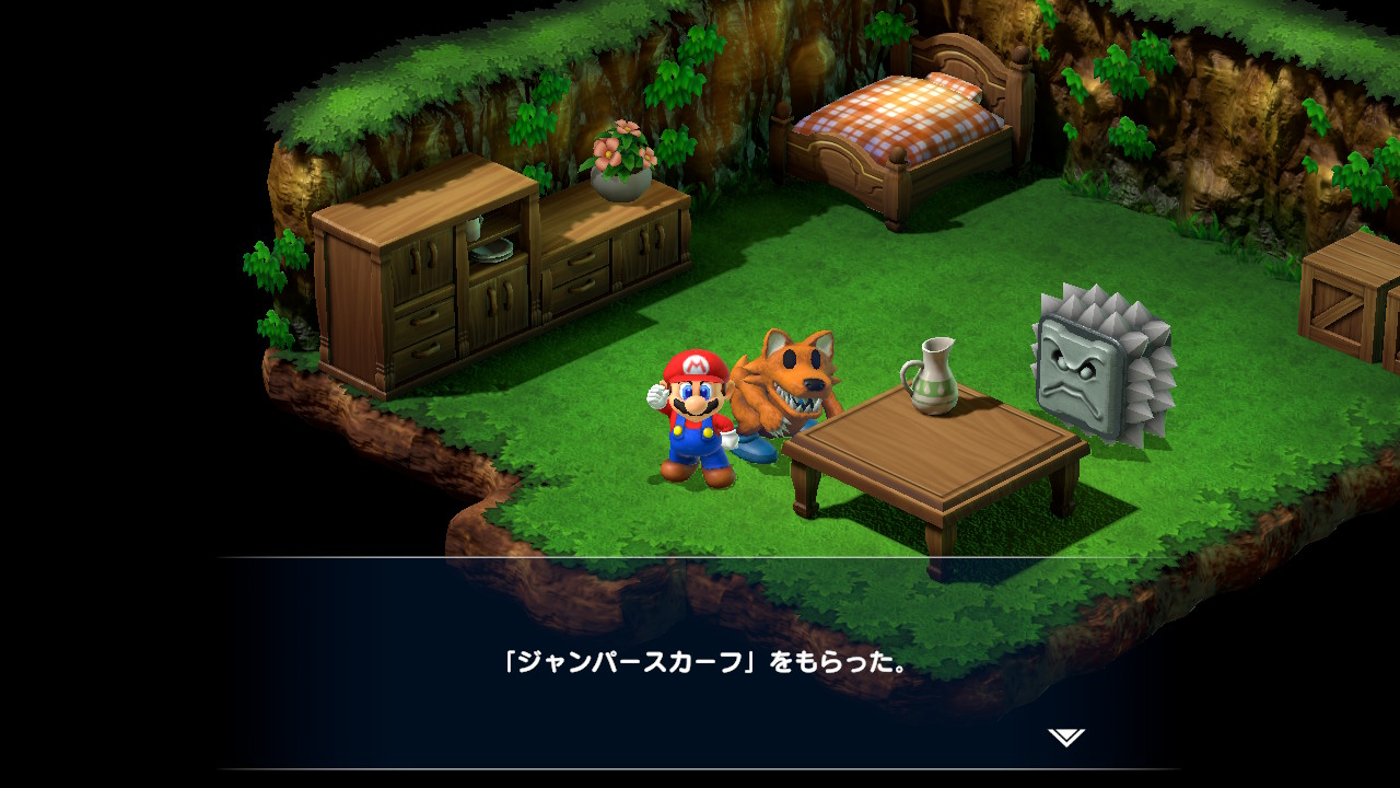 今回はアクセサリー集め回。まずはジャンパースカーフ。これはマリオの最強アクセサリーですね。入手方法はスーパージャンプを30回成功させるというもの。これが非常に大変。私はジャッキー戦で偶然成功して入手できました。タイミングが結構シビアで、連続で成功させやすい敵を見つけて挑戦するのが良さげですね。もう20回を超えた辺りで無駄に緊張して手汗が半端なかったですw効果は即死攻撃無効と全ステータス+30というまさに最強の名に相応しいアクセサリーになっています。このタイミングで入手できたのは今後激化する戦いを優位に進められるので良かったかも。